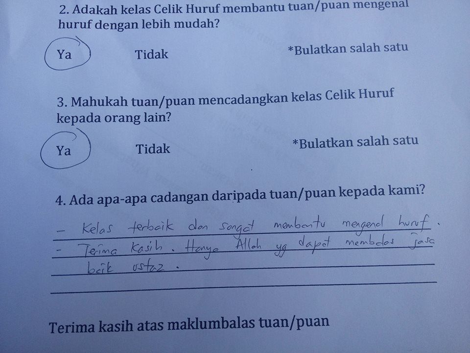 - Daripada tak kenal huruf, habis kelas 1 HARI sudah boleh mengenal huruf dan membaca potongan pendek ayat Alquran.